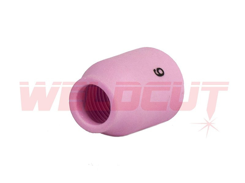 Die zu den WIG-Brennern des Typs WP9 passende Keramik-Gasdüse 53N60 / 701.0319. Die Düse ist der Größe #6 Ø 9.5 mm und ihre Länge beträgt 25,5 mm. Das Produkt wurde nach dem BINZEL-Standard hergestellt.