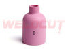 Die zu den WIG-Brennern der Typen WP9, WP17, WP18 und WP26 passende Keramik-Gasdüse 57N75 / 701.1199. Die Düse ist der Größe #6 Ø9.5mm und ist für die große Gaslinse Jumbo geeignet. Ihre Länge beträgt 48 mm. Das Produkt wurde nach dem BINZEL-Standard hergestellt.