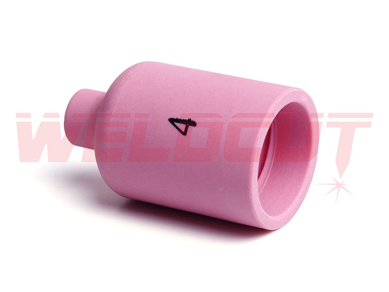 Die zu den WIG-Brennern der Typen WP17, WP18 und WP26 passende Keramik-Gasdüse 54N14 | 701.0424. Die Düse ist der Größe #8 Ø12.8mm und ihre Länge beträgt 42 mm. Das Produkt wurde nach dem BINZEL-Standard hergestellt.